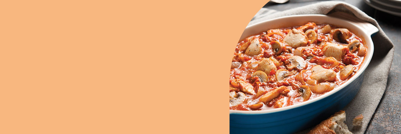 Le grand classique français : coq mijoté au vin rouge, accompagné d’une baguette croustillante à partager.