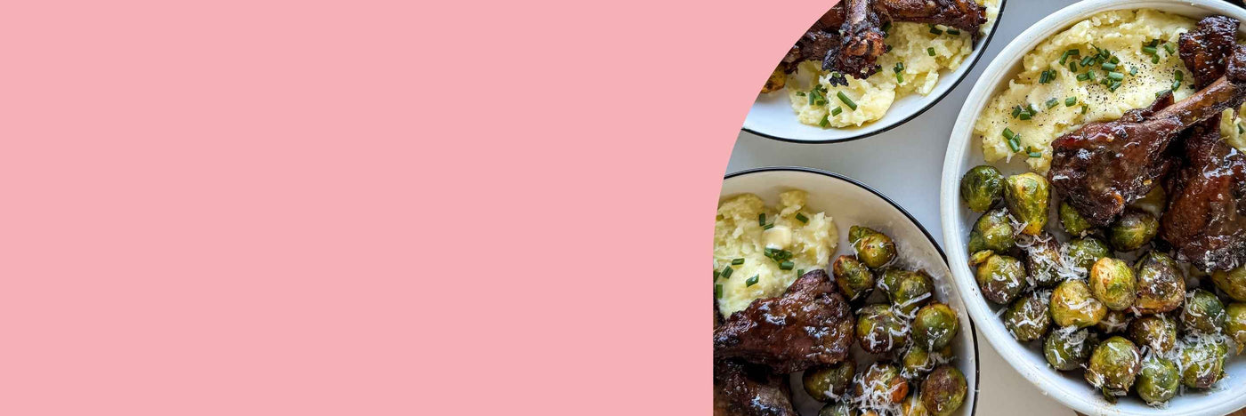 Des pilons de canard rôtis à la perfection, accompagnés de purée maison et de choux de Bruxelles.