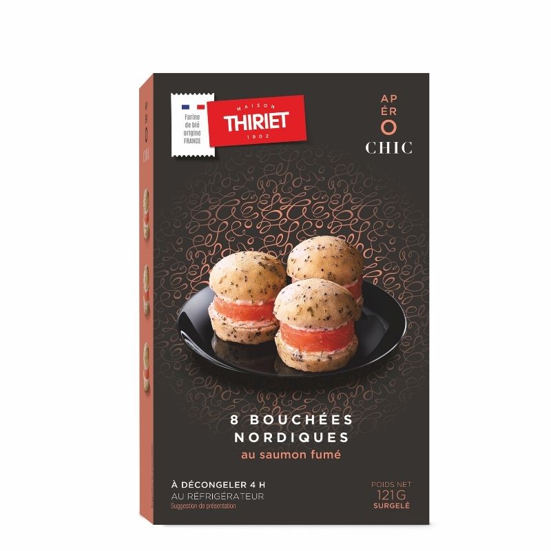 Sublimez vos réceptions avec ces délicieux amuse-bouches au saumon fumé. Présentés dans de jolis mini pains moelleux, ils renferment une garniture généreuse à base de saumon fumé et d’une crème au tzatzíki, mascarpone et yaourt. Une combinaison raffinée qui marie parfaitement le fondant, le frais et l’onctueux.Ces mini bouchées au saumon fumé sont idéales pour vos cocktails, apéritifs festifs ou buffets dînatoires. Déjà prêtes et surgelées, elles vous offrent une solution pratique et élégante pour recevoir sans stress, tout en régalant vos invités.