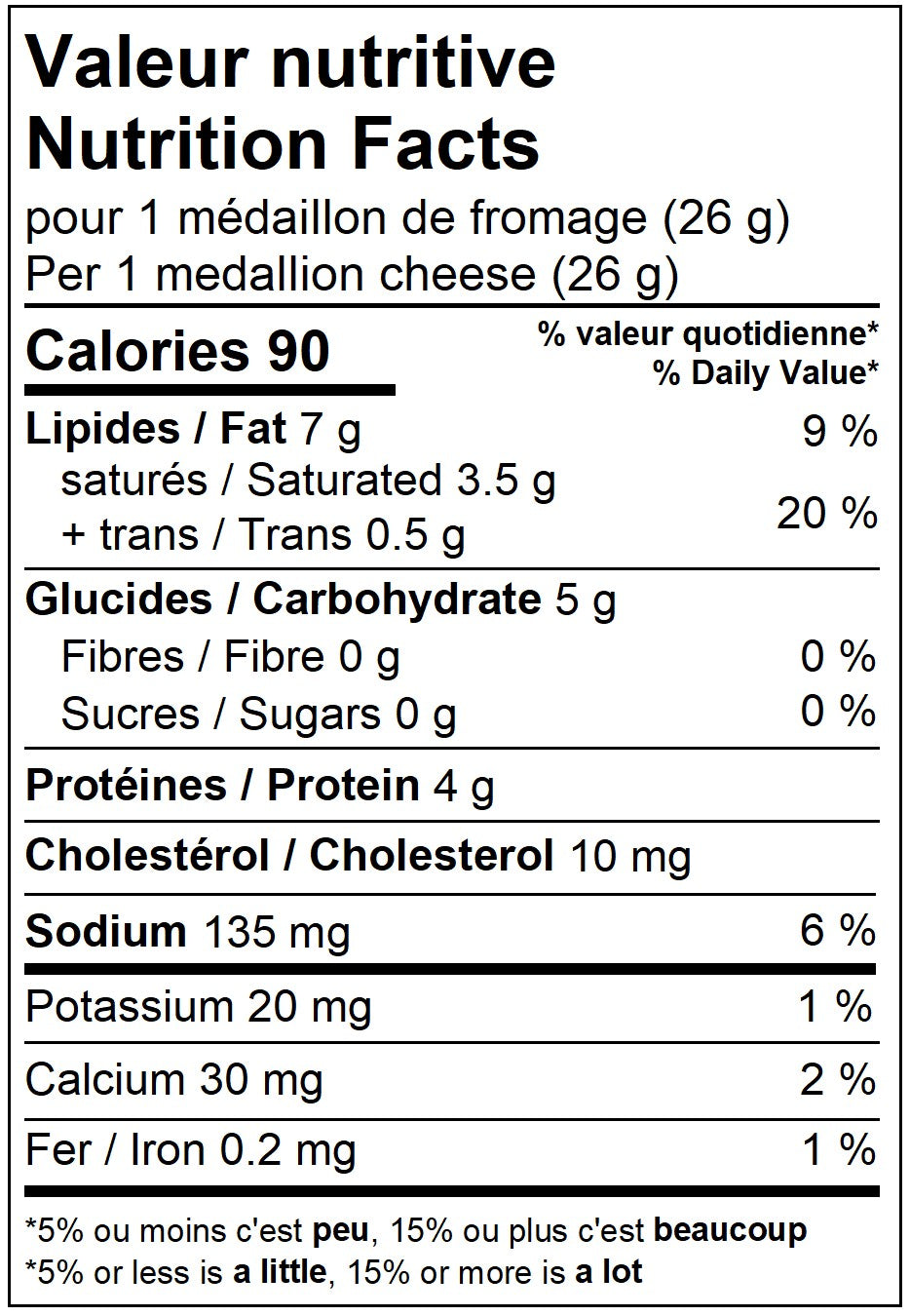 Ingrédients : Fromage de chèvre (lait de chèvre pasteurisé, sel, présure microbienne, chlorure de calcium, culture bactérienne, culture de moisissure), Farine de blé, Eau, Huile de tournesol, Amidon de maïs, Sel, Gluten de blé, Levure, Huile d'olive, Poudre à pâte, Gomme de guar.