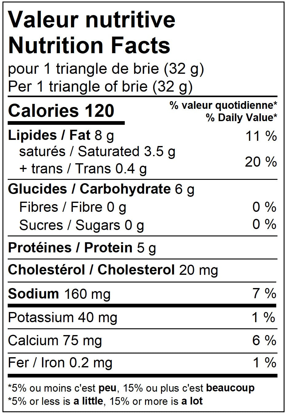 Ingrédients : Fromage brie (lait pasteurisé, sel, culture microbienne, présure microbienne, chlorure de calcium), Farine de blé, Eau, Huile de tournesol, Amidon de maïs, Sel, Gluten de blé, Levure, Huile d’olive, Poudre à pâte, Gomme de guar.