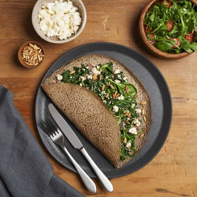 La farine de sarrasin biologique utilisée dans nos galettes est riche en fibres, en minéraux et en antioxydants. Il s'agit aussi d'une céréale complète qui favorise la satiété! Ces crêpes sont donc une option saine pour accompagner vos repas, en plus de prendre soin de votre digestion. Bref, une superbe option équilibrée et nutritive.
