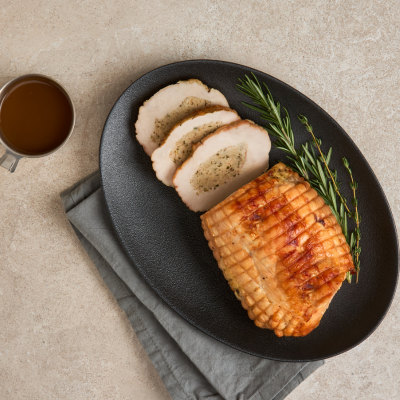 Notre rôti de dinde farci tout prêt est conçu pour servir de 6 à 8 personnes. Accompagnez-le de notre écrasé de pommes de terre, de polenta crémeuse ou d’un gratin pour un festin tout en confort. Et pour varier, vous pouvez aussi l’intégrer à votre menu de semaine – parce qu’il n’y a pas de mauvaise journée pour bien manger.