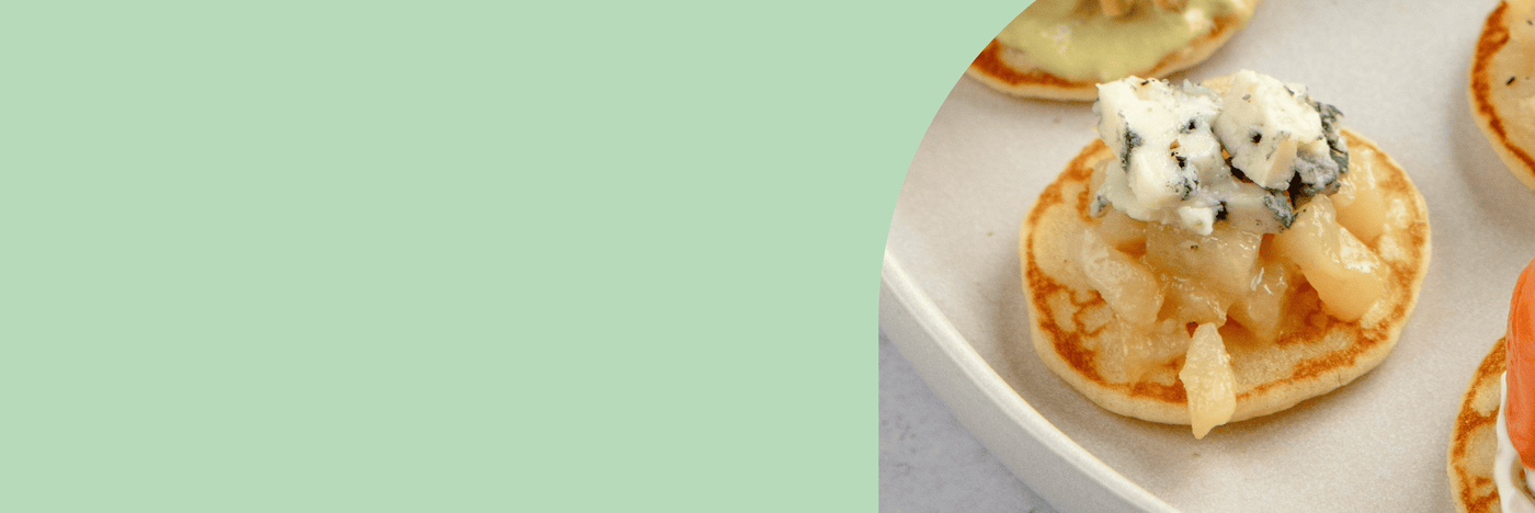 - Spoon a small amount of caramelized pears onto each warm blini.