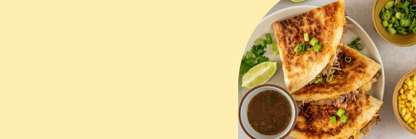 What toppings go on pulled pork quesatillas?